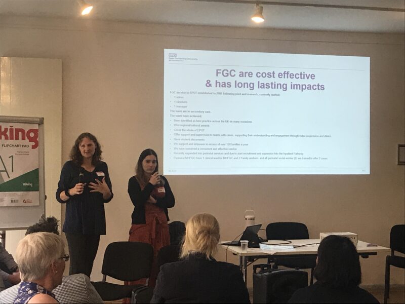 Katharine Timson-Sheppard and Joanne Shed talked us through how the model is used within Essex Partnership University Trust (EPUT). Essex is the longest running example of the model supporting adults in the UK and is a great showcase of how the NHS can be at the forefront of supporting person-centred planning in recovery and support within mental health services. The presentation set out clearly how FGC is cost effective and making long lasting impact, supporting over 120 families each year. Jo talked about the extension of the approach into perinatal support and how beautifully aligned the model is with NHS England’s three principles for perinatal support. Case studies brought to life the way the approach is enabling people to regain control of their lives, to connect with others and is keeping people safe and well.